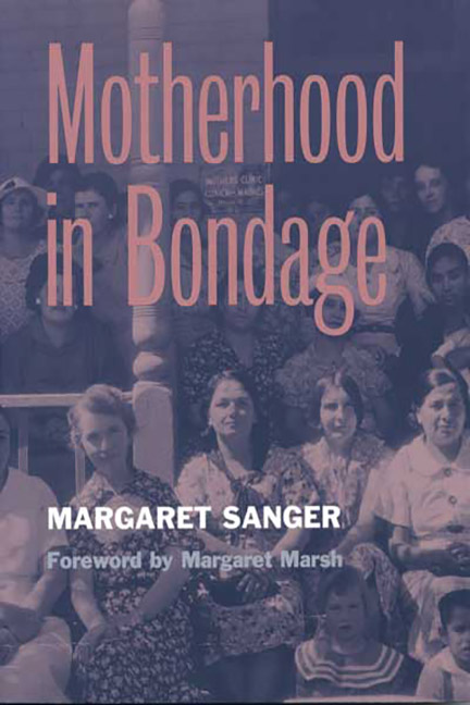 In Motherhood in Bondage, first published in 1928, Sanger reproduced letters written to her from women and sometimes men from all over the country, in both urban and rural areas, who were seeking advice on reproductive matters and marital relations, but mostly imploring her to help them find ways to avoid more pregnancies. The letters are grouped by theme into sixteen chapters, and Sanger wrote an introduction to each chapter.